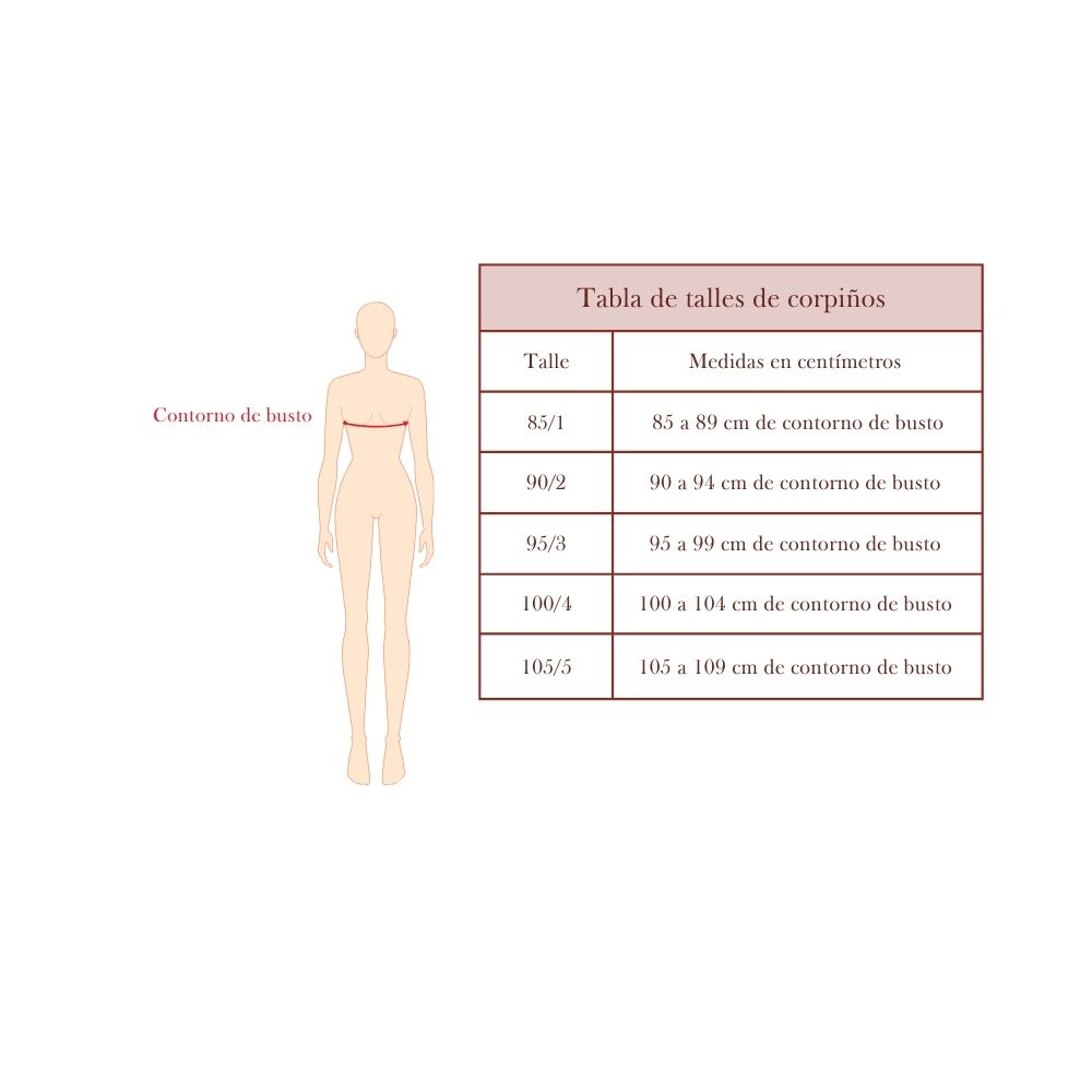 En cada producto vas a encontrar nuestra tabla de talles. Compará tus medidas con las que aparecen allí, especialmente las de contorno de busto y contorno de cadera.